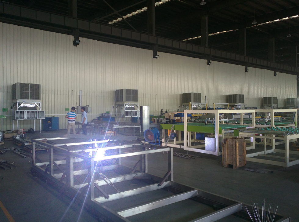 3、環??照{降溫迅速,采用大風量低噪音風葉,每臺機送風量大約18000m3/h,可迅速的排出車間內的熱空氣,降低車間內的溫度