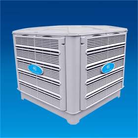 環保型空調是集通風、降溫、防塵、除臭、調濕于一體的新型節能環保通風降溫機組。它是一種全新的無壓縮機、無制冷劑、無銅管的環保產品,其冷卻核心部件是水幕蒸發器(多層波紋纖維層壓板)和1.1KW電機。工作原理是通過風扇產生的壓力,迫使外界空氣通過冷卻水幕充滿房間。當外界空氣通過冷卻水幕時,會與冷卻水幕上的水膜充分接觸,空氣中的熱量會瞬間被水膜吸收,從而改變進氣的溫度和濕度,迅速降低室內溫度,達到通風降溫的效果。